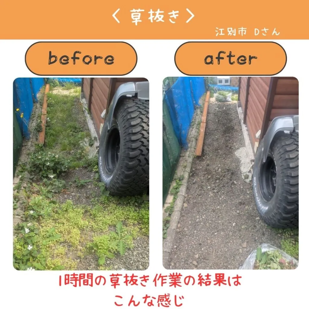 写真ではなかなかわかりにくいかもしれないですが、この結果にご依頼いただいたお客様は大変感激されて、また別の箇所の草抜きもお願いしたい!とその場でご依頼いただきました。
