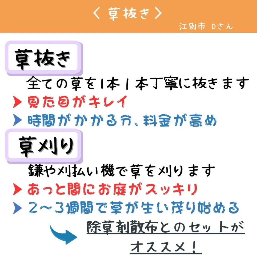 そのため、草刈りをご希望のお客様には除草剤散布をセットにしておこなうことをオススメしています!